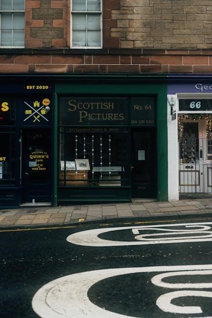 Edinburgh’s shopping scene is vibrant‚ with key areas like Princes Street‚ George Street‚ and the Royal Mile. Princes Street is renowned for its mix of high-street brands and scenic views‚ while George Street offers luxury boutiques and designer stores. The Royal Mile‚ lined with unique shops and souvenir stores‚ is perfect for finding local crafts and gifts. These areas are impeccably mapped in the Edinburgh City Centre Map PDF‚ ensuring shoppers can navigate effortlessly between popular destinations and hidden gems.